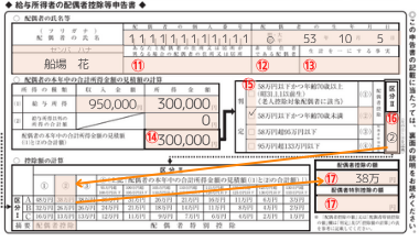 ⑰配偶者控除の額・配偶者特別控除の額
