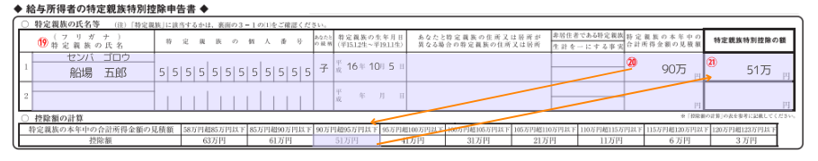 特定親族特別控除申告書 の書き方